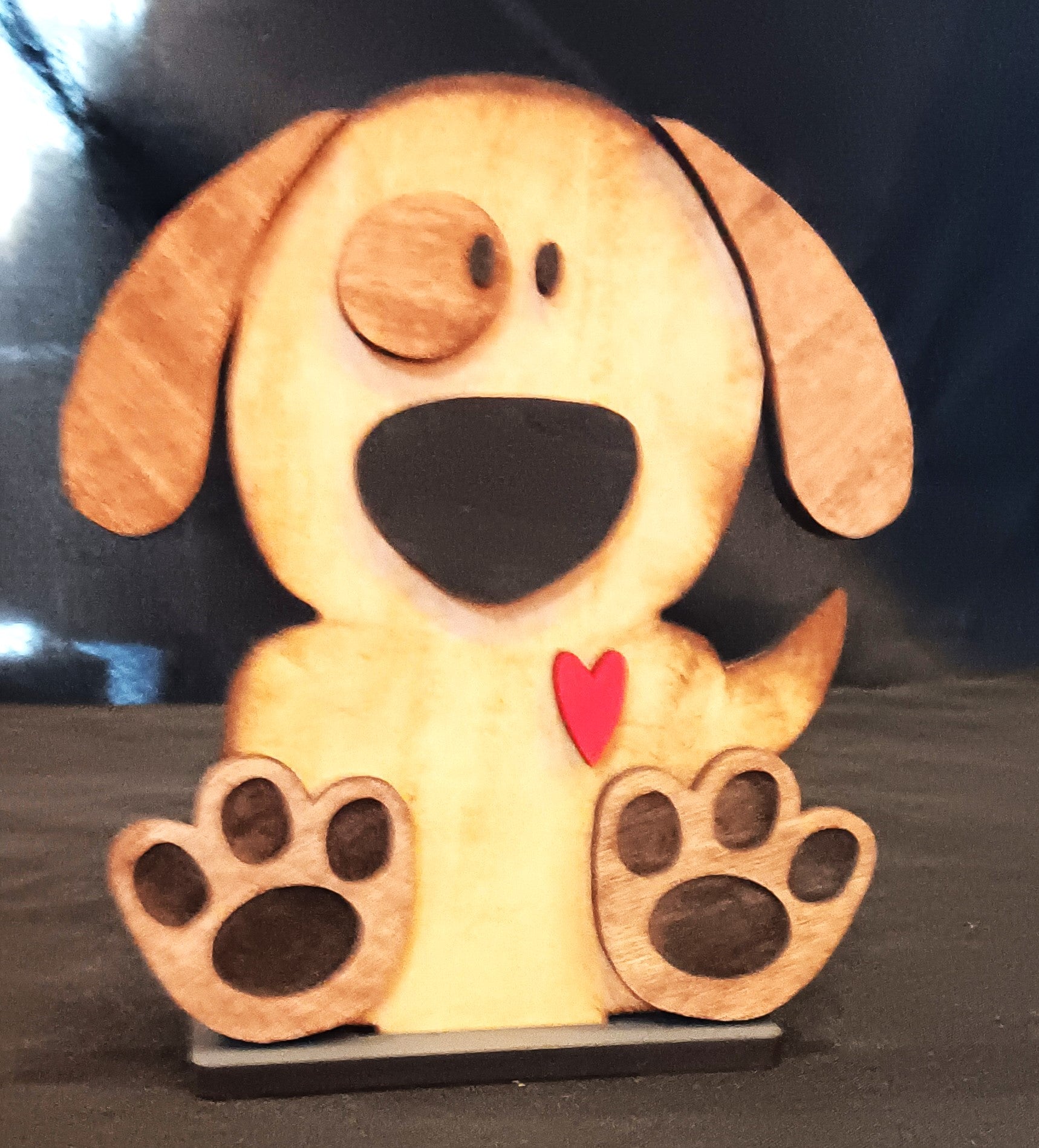 After I cut each piece on the laser, I apply two different color stains and acrylic paints.