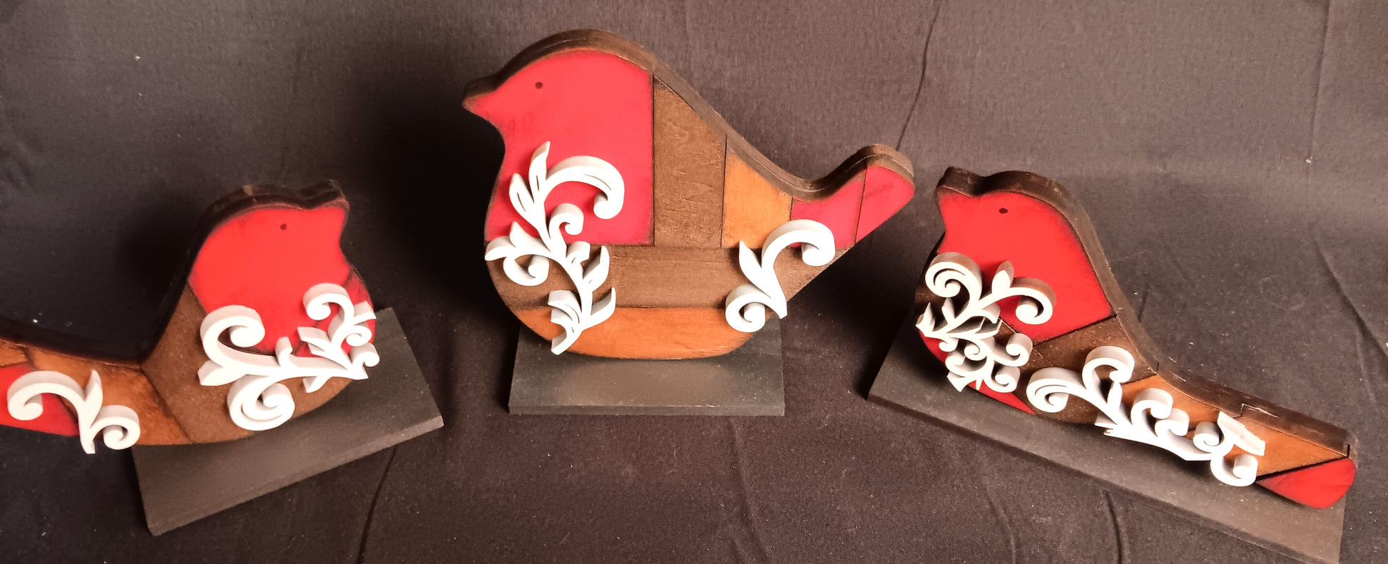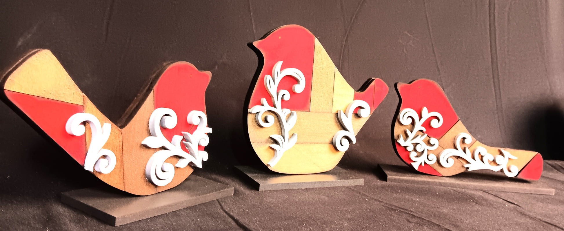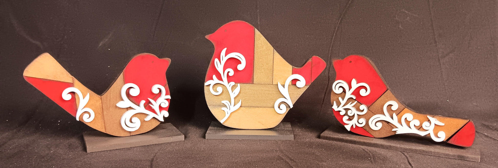 This gorgeous Bird trio is laser cut and hand painted! Plus, each comes with its own stand!