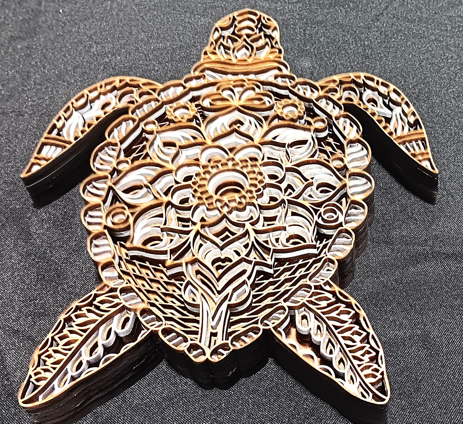 Add a touch of natural beauty to your home decor with this breathtaking Layered Turtle statue. This hand-painted wooden turtle is expertly crafted with laser-cut precision, and features six intricate layers that make for a truly stunning visual display.