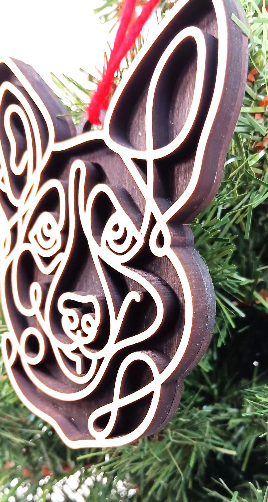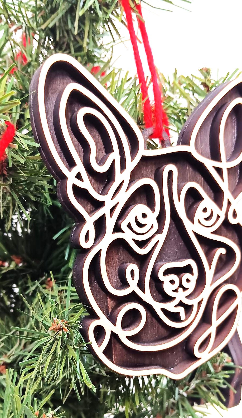 This wooden ornament is two layers of premium woods. The back layer has a unique Aged Barrel stain. The top layer is made from hard maple, and it has a polyacrylic coating.