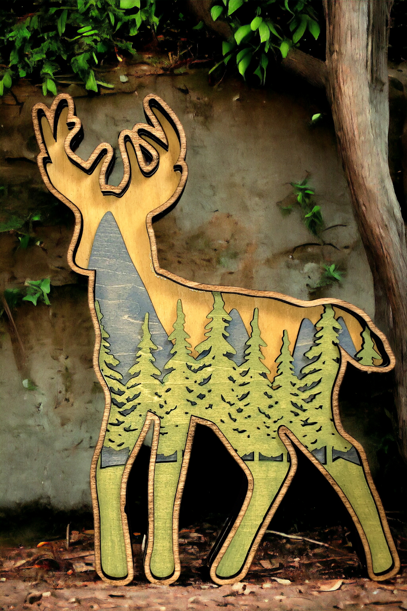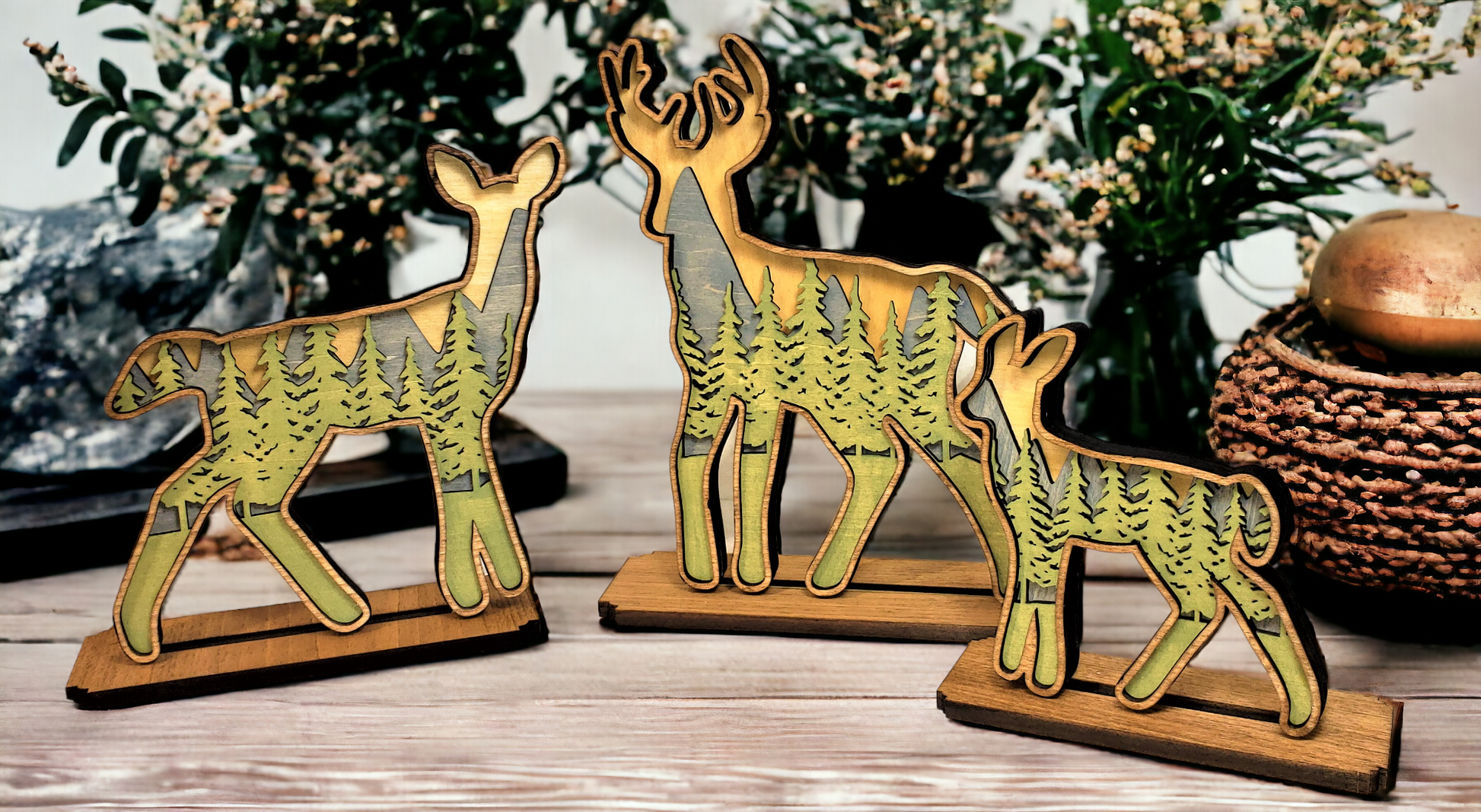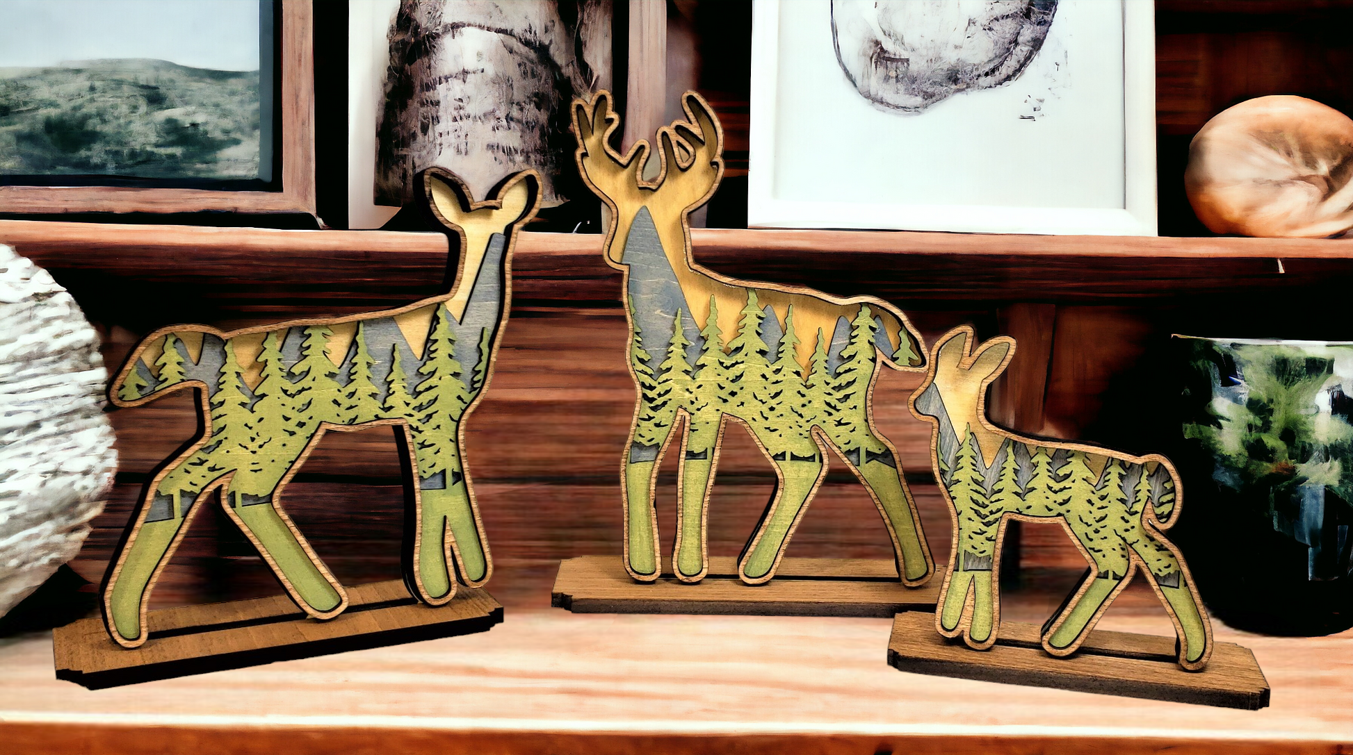 Each deer is 4 layers! Each one shows off what they love most about their habitat, mountains and forests!