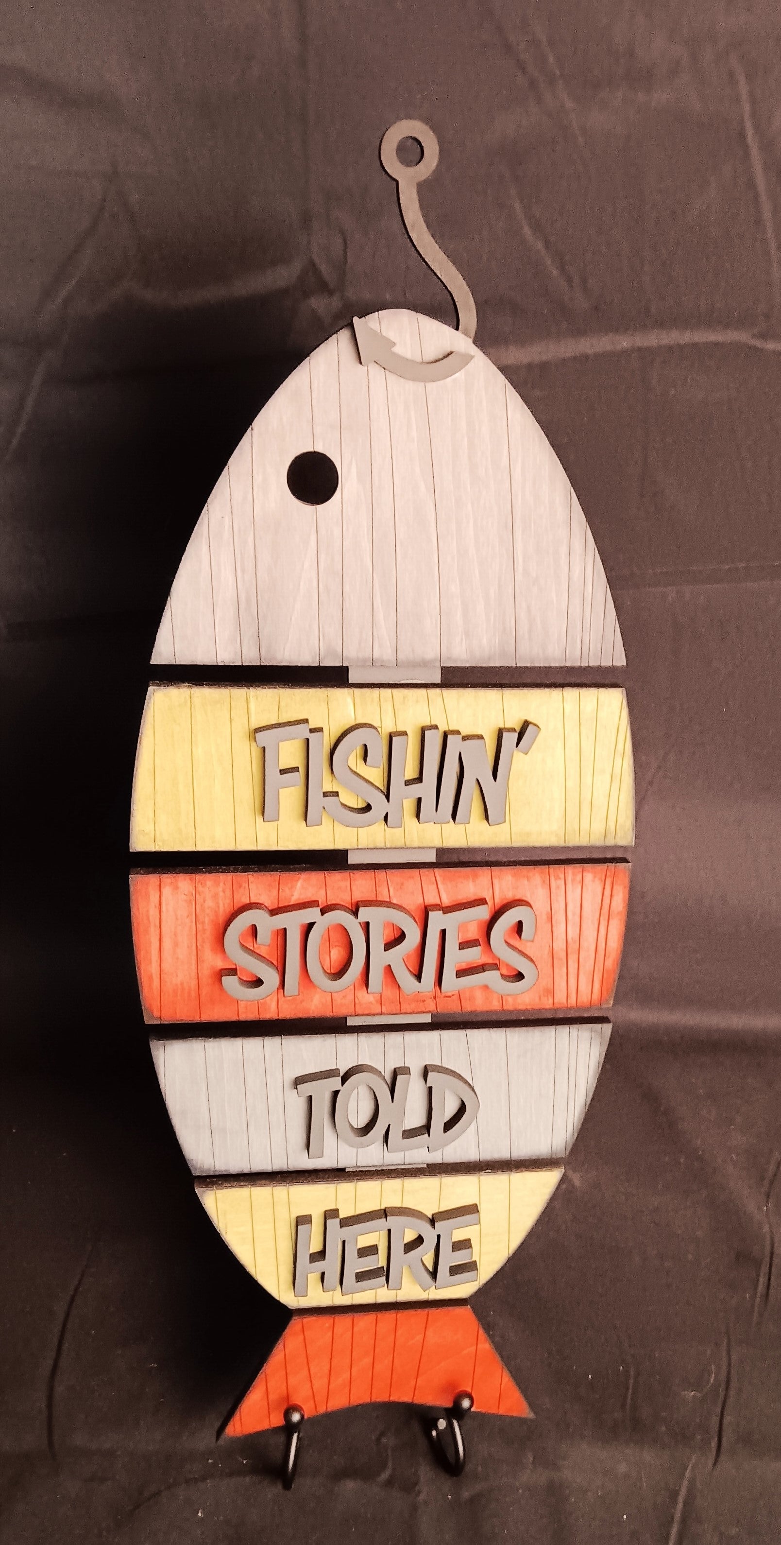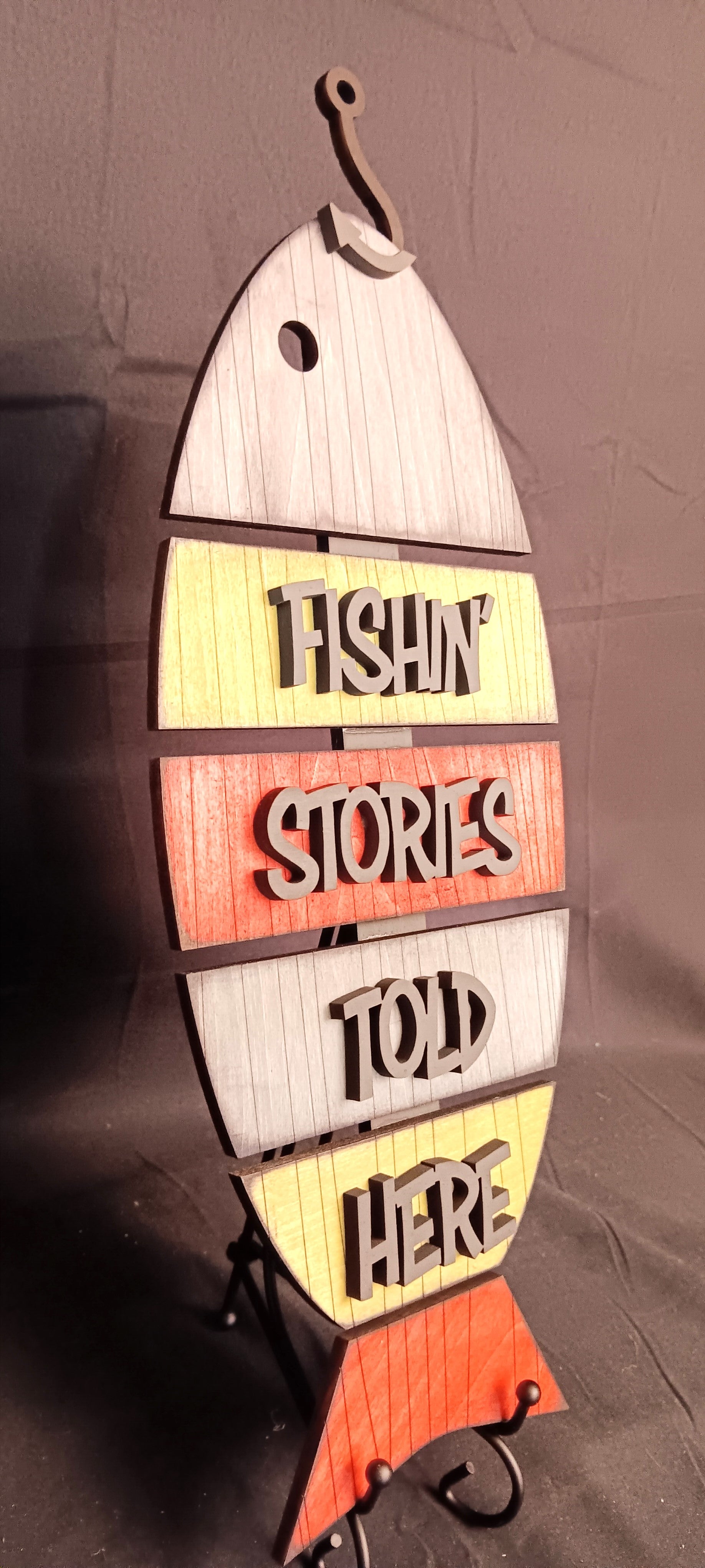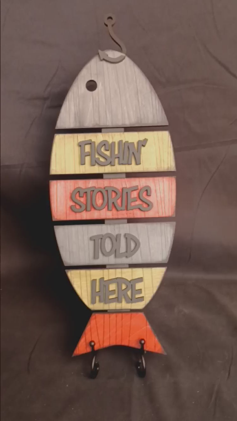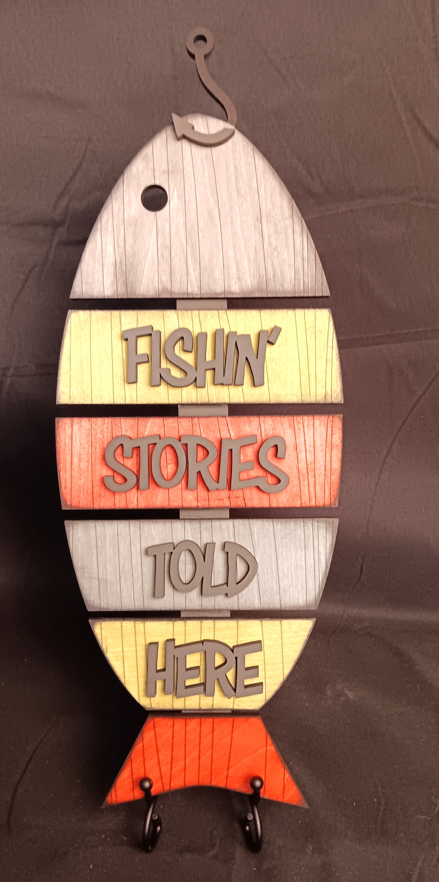 There are also words stating "Fishin' Stories Told Here" across the middle four sections.