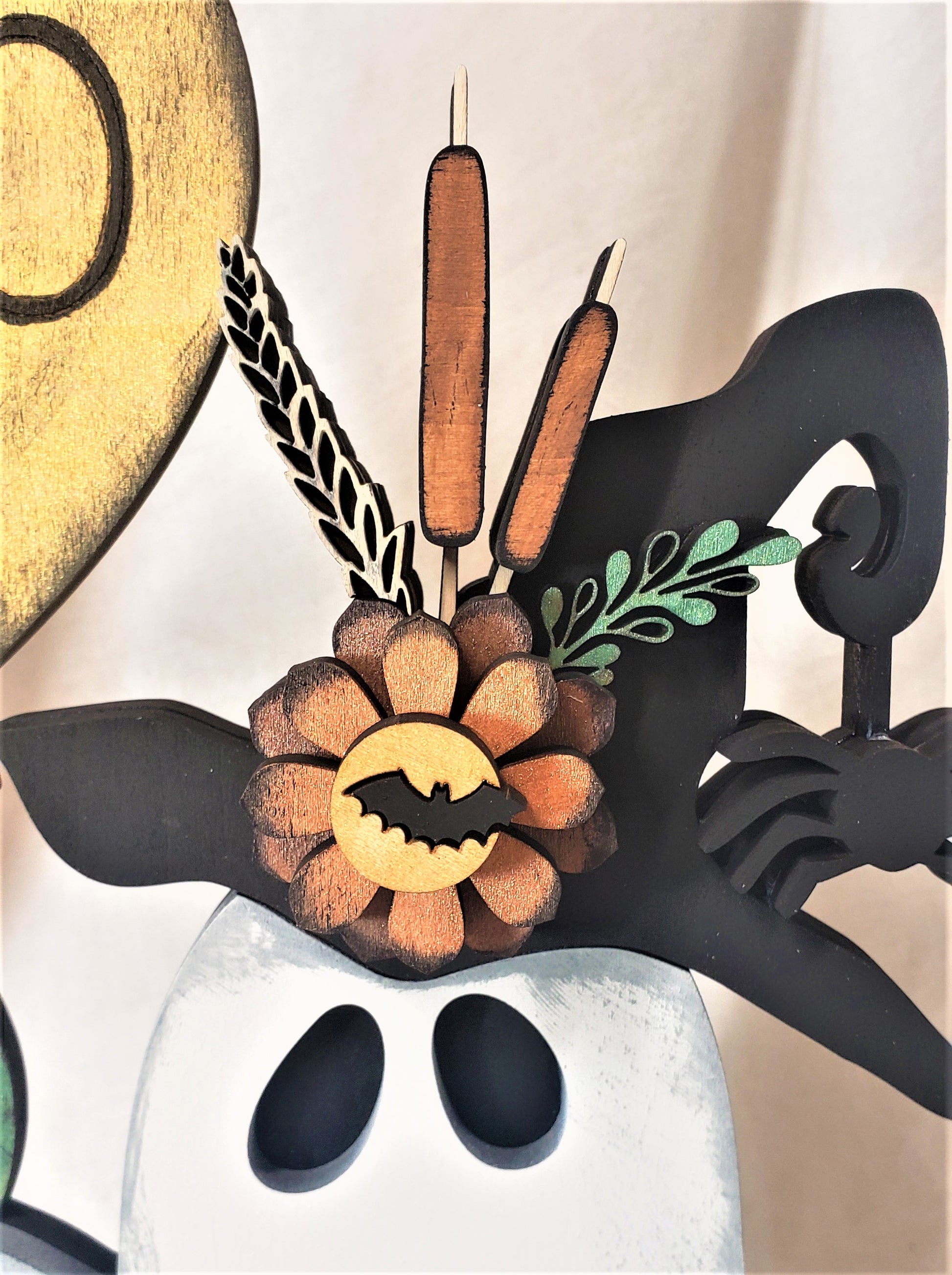 I cut each piece on our laser and then hand paint each one using a variety of acrylic paints. He then gets a polyacrylic coating to protect him.
