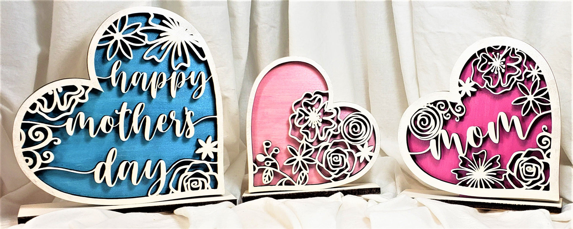 This beautiful heart trio is laser cut, 3D, and hand painted!