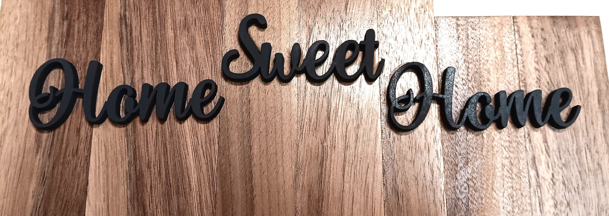 The polyurethane covering brings out the uniqueness of each piece of Walnut beautifully. Each sign is approximately 12.5 inches wide and 13 inches high. Each one is one of a kind and unique due to the different grains and patterns from each piece I use. The writing is laser cut from quarter inch Basswood and painted black.