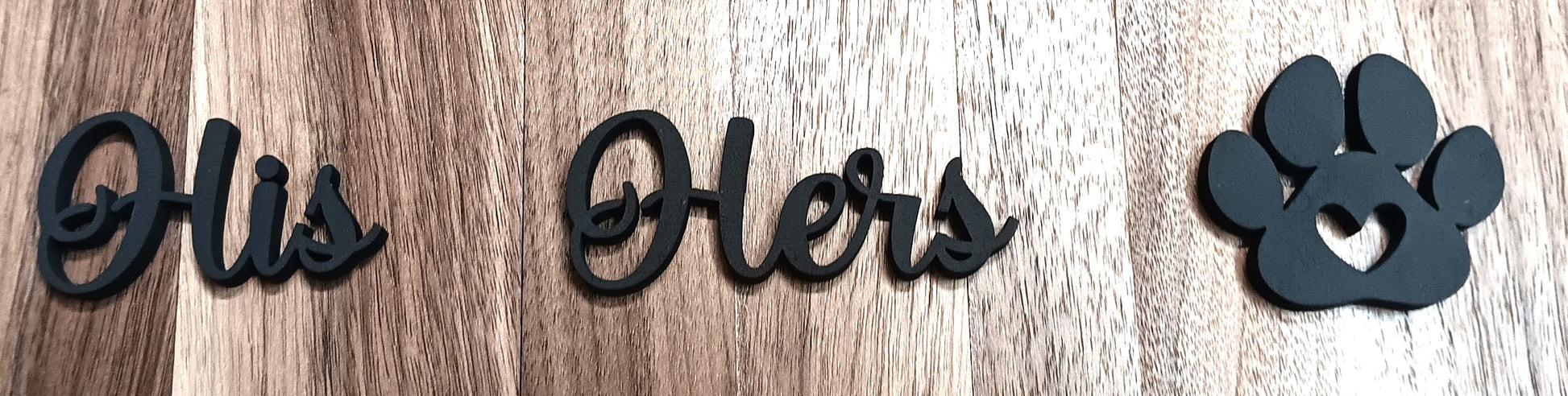 Each plaque says "Home Sweet Home" at the top, has "His, Hers & a Pawprint" in the middle, and then three key hooks at the bottom. You can definitely change up the wording if you would like!! Just send me a note at checkout with what you would like it to say. I'll reach out if I have any questions.