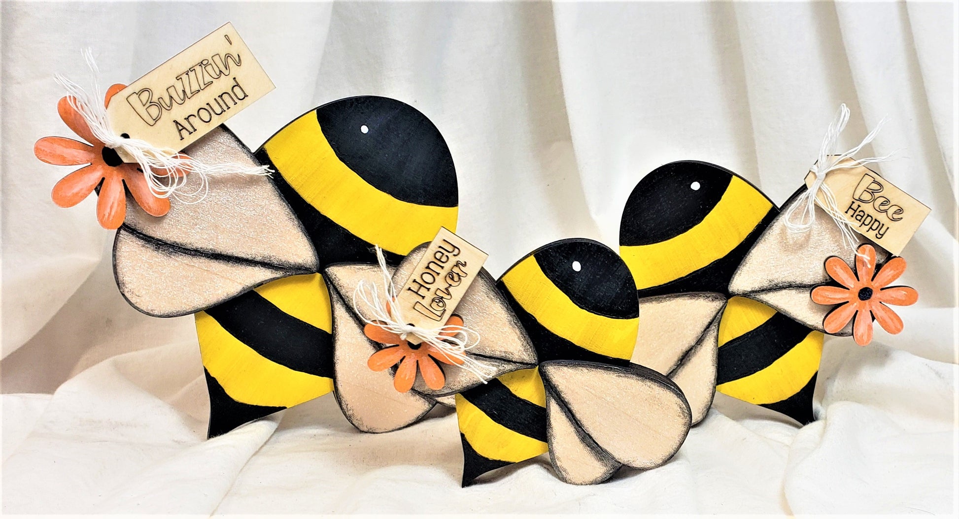 These cute chunky honeybees are adorned with a flower and their favorite signs.