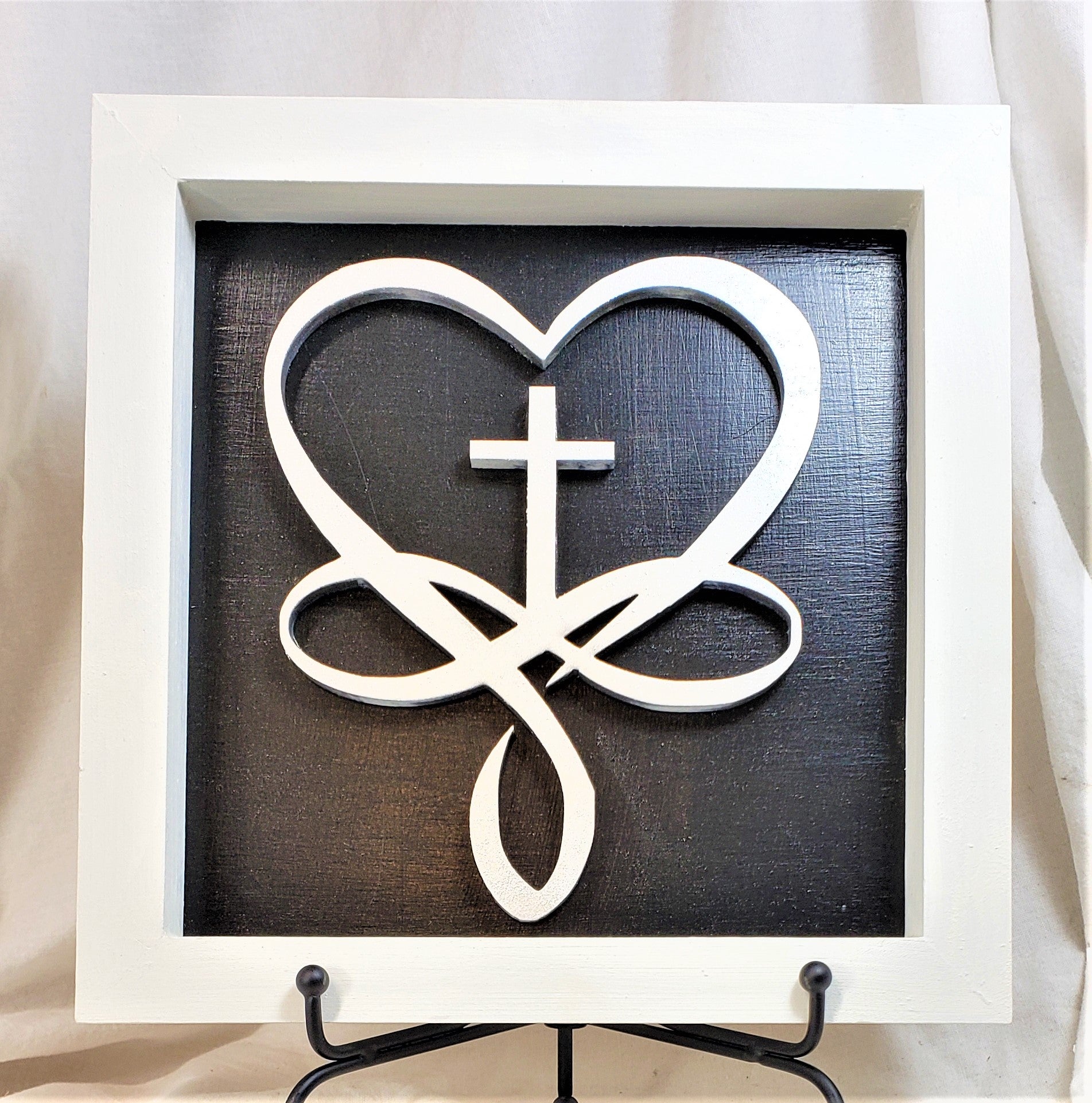 The background is painted black and the frame is painted white to highlight the gorgeous Infinity Heart.