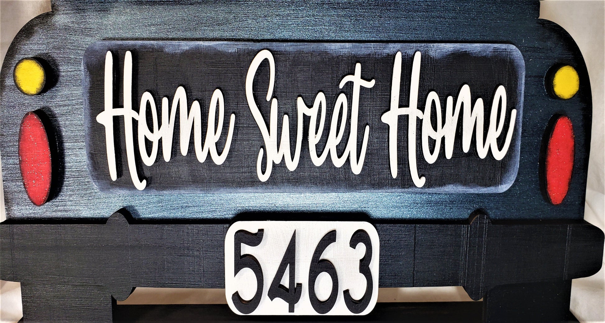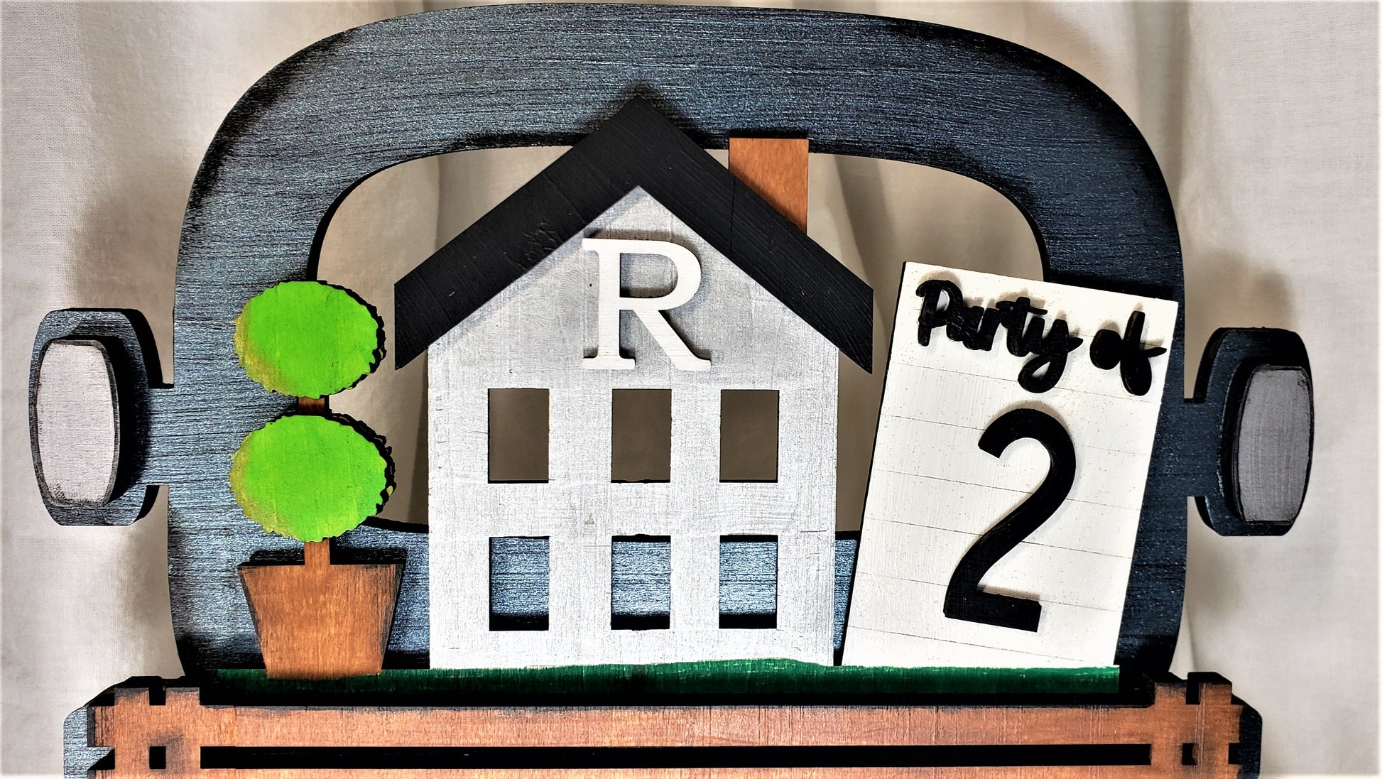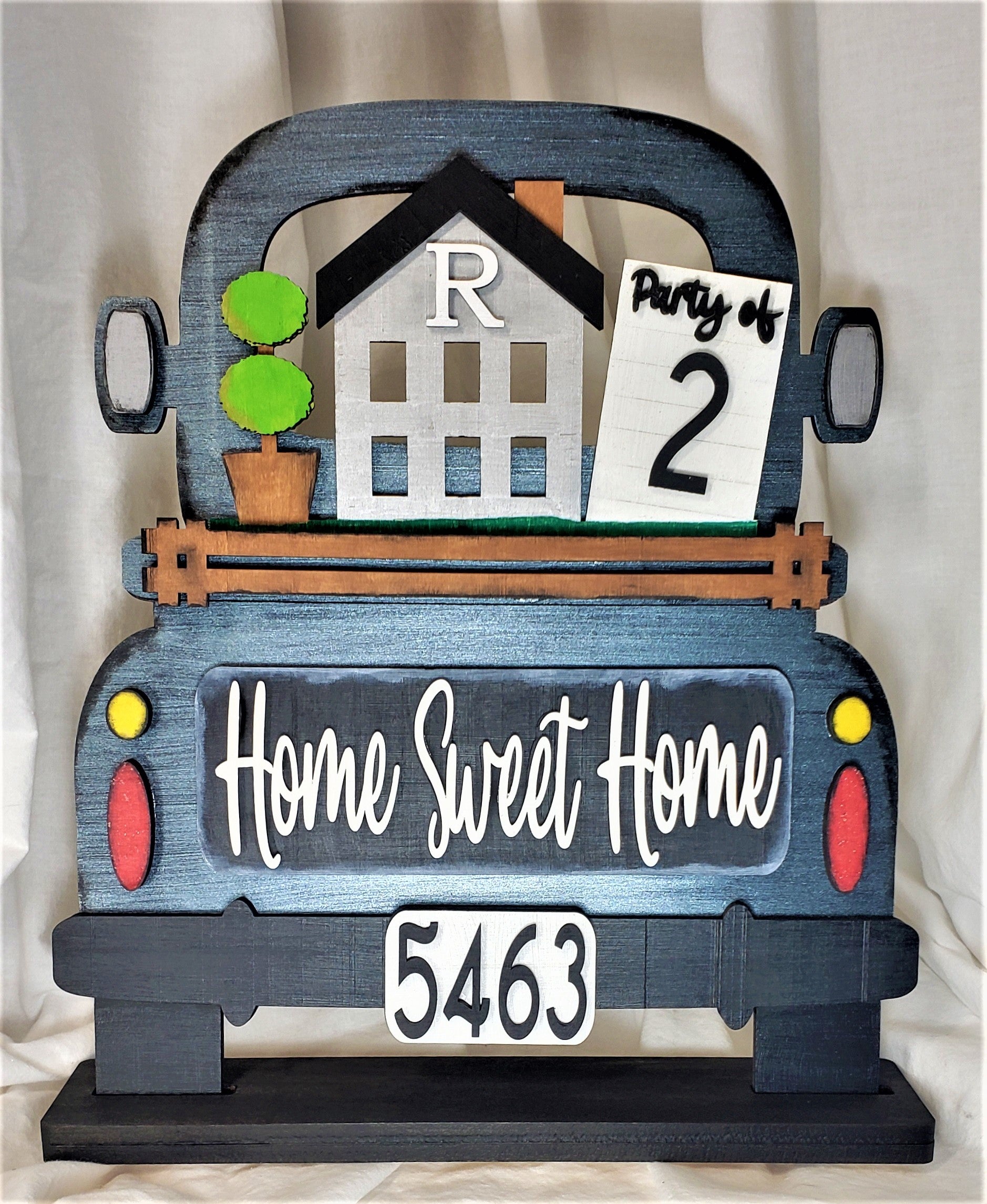 When you bring home this adorable truck, it will be decked out with a cute home scene in the back window, that you can personalize with the first letter of your last name even! It also has a tailgate sign that says, "Home Sweet Home", and a license plate that you can pick your numbers for!