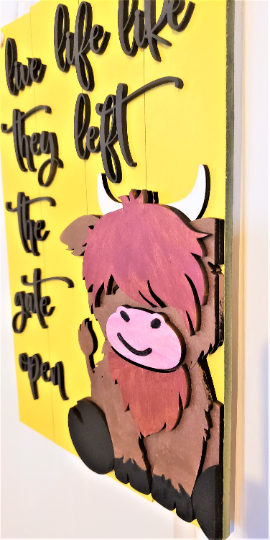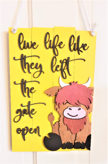 Live Life Like They Left The Gate Open Highland Cow Sign!