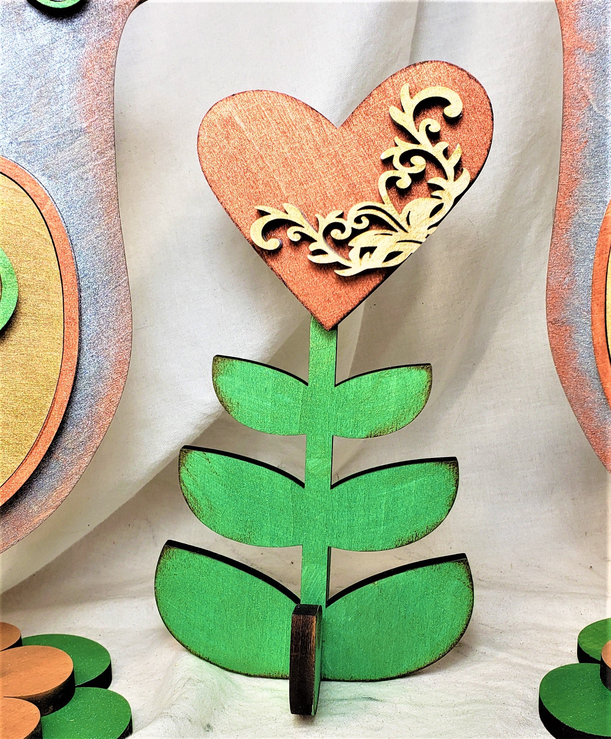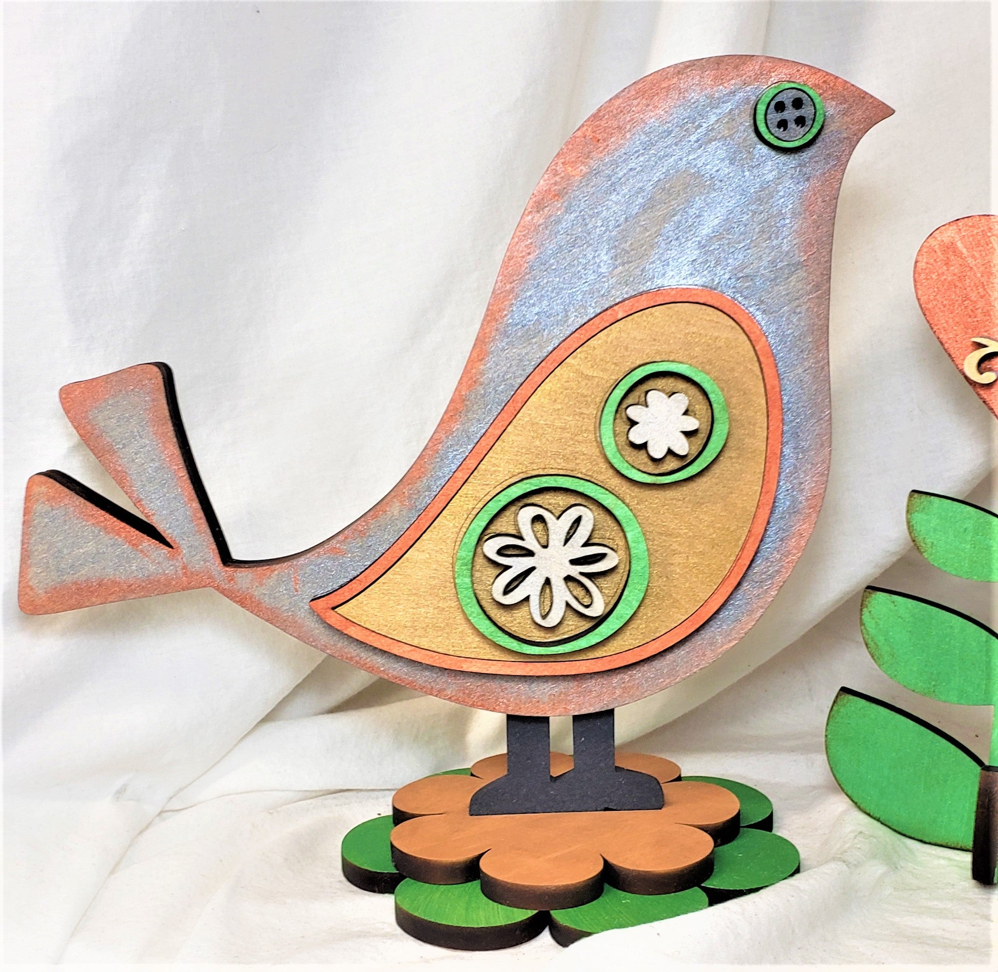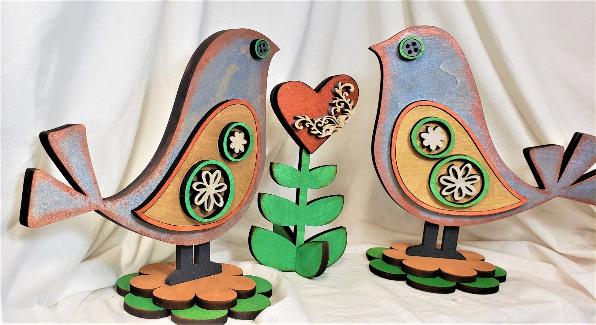 Each bird has its own two tier stand and the flower heart stands by itself as well.