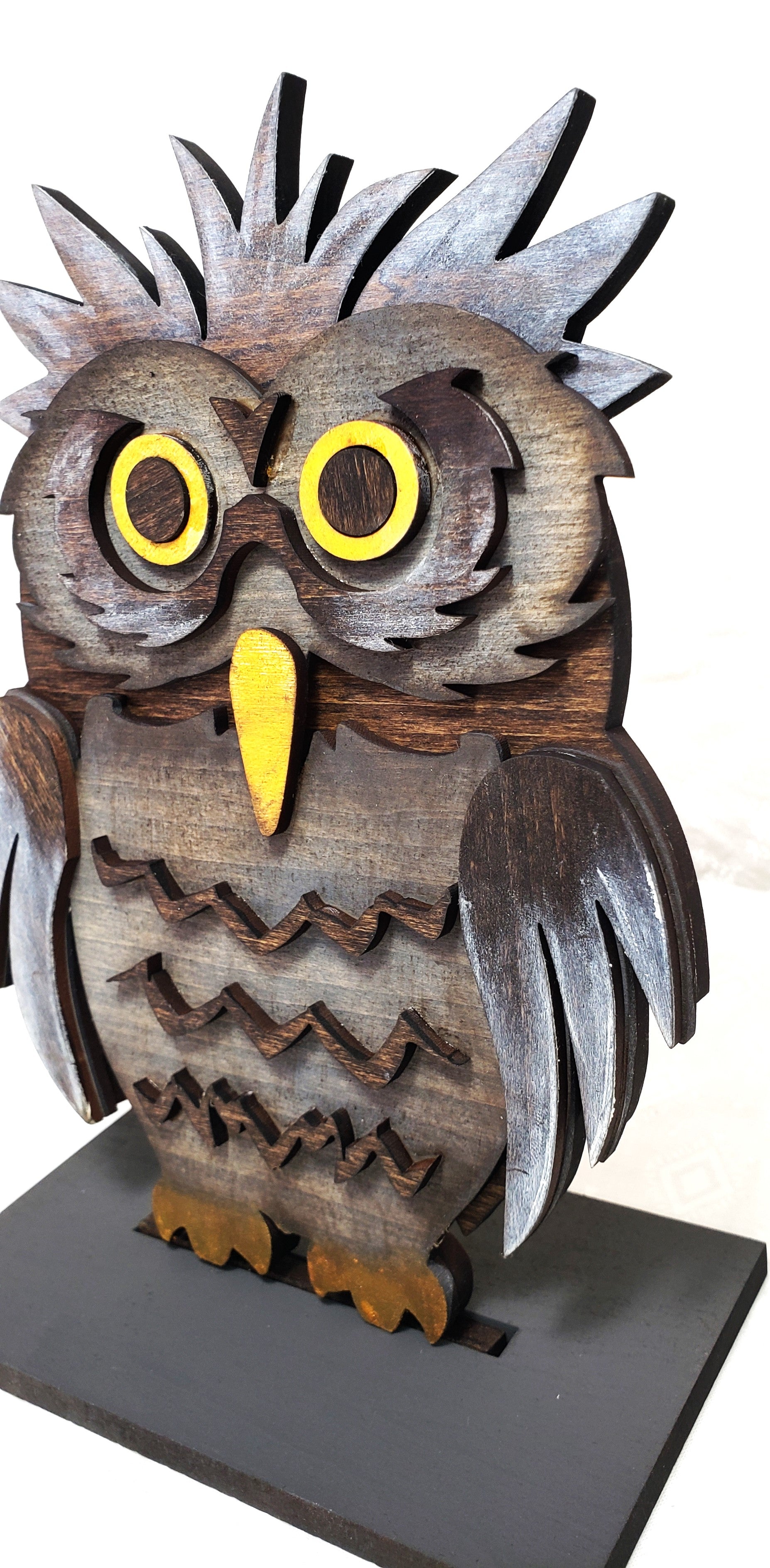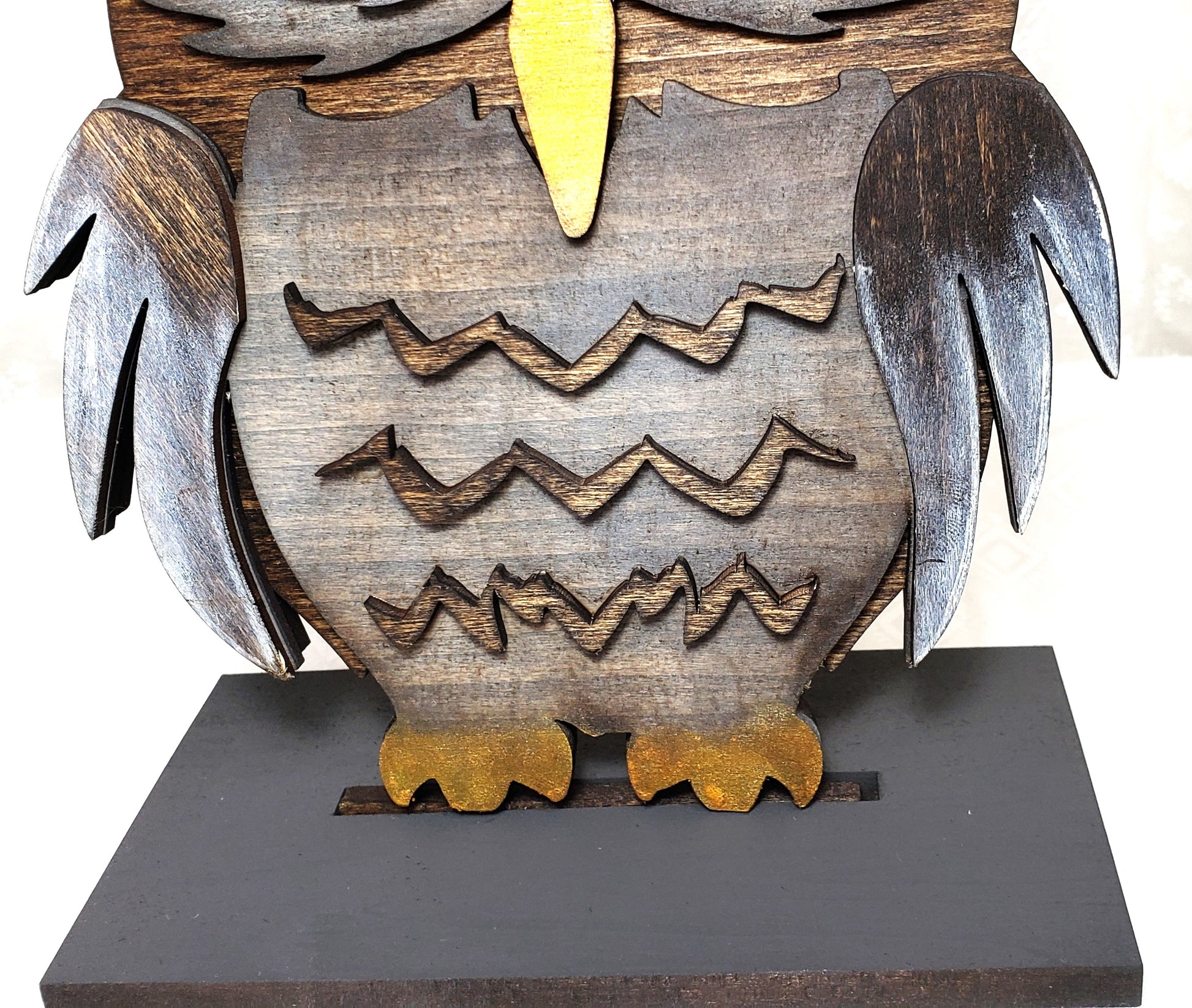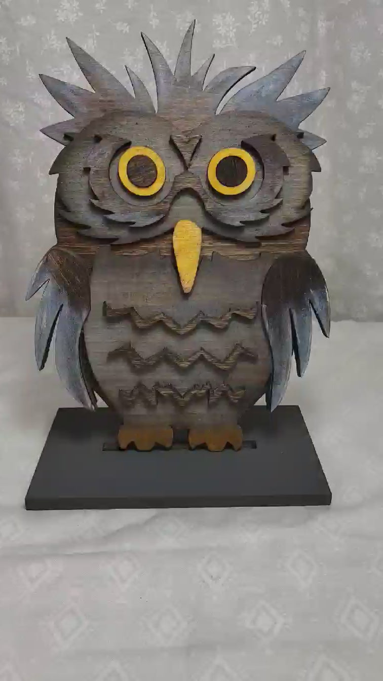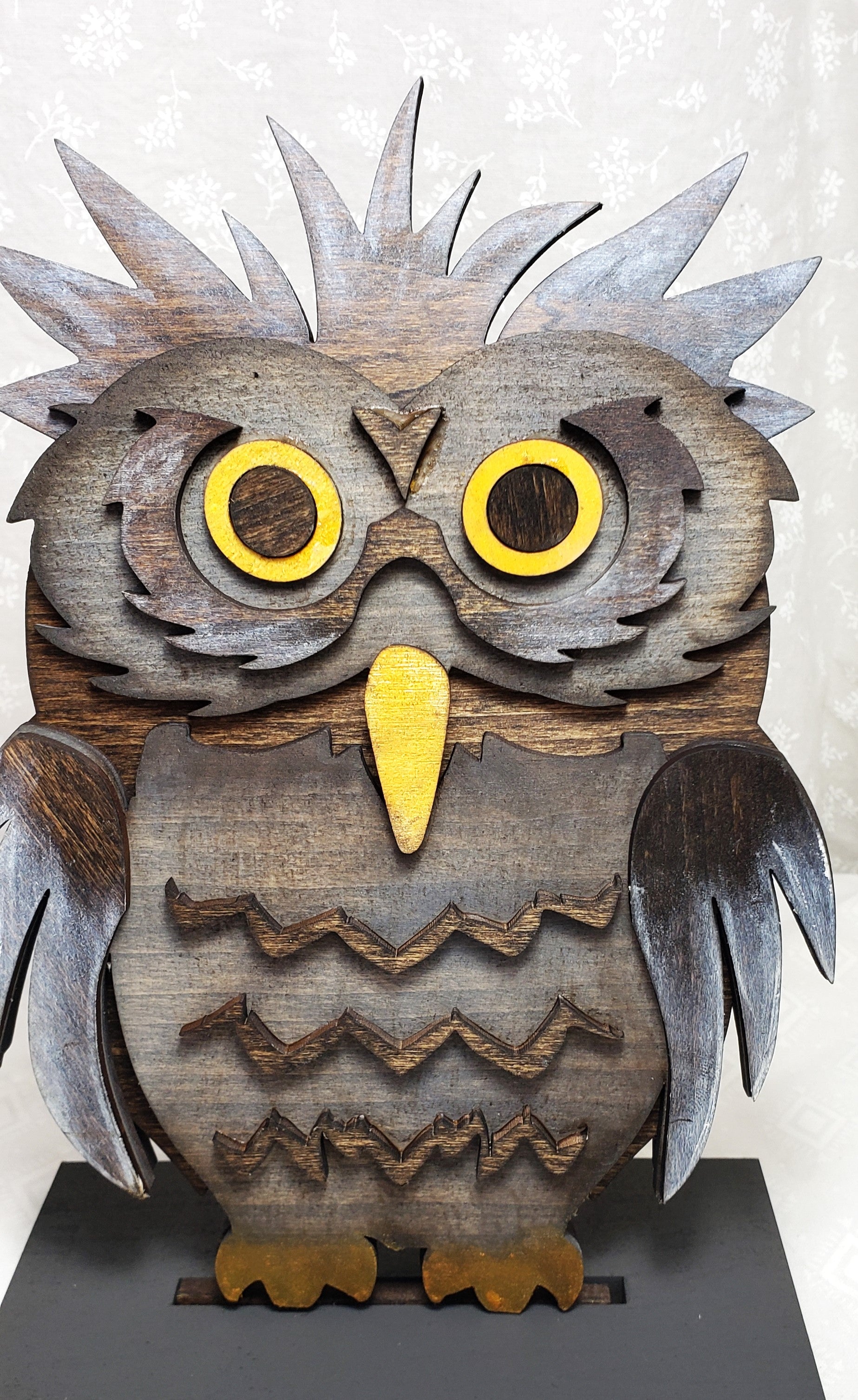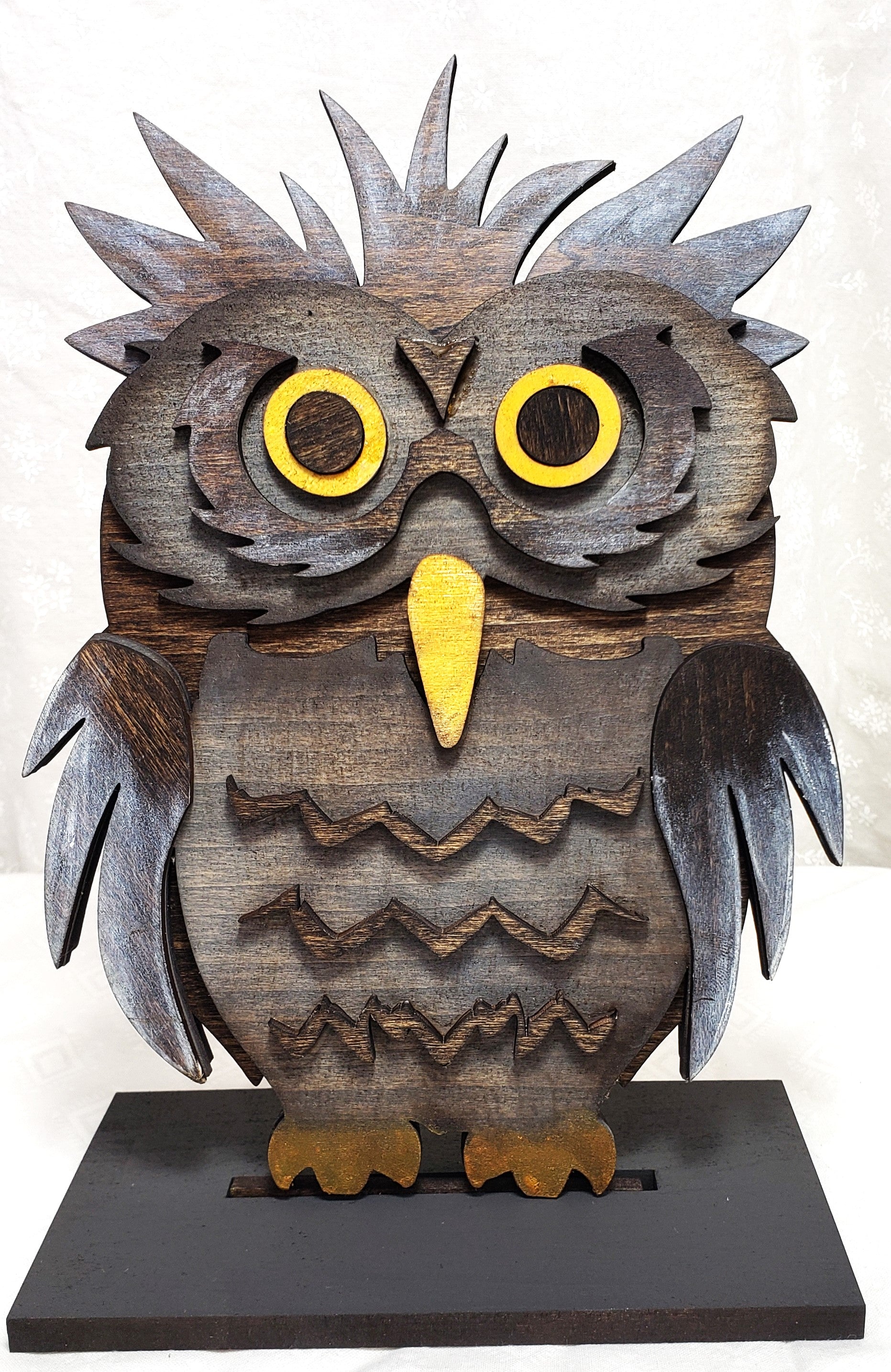 This adorable owl stands 8 inches tall and includes his "perch" to sit on.