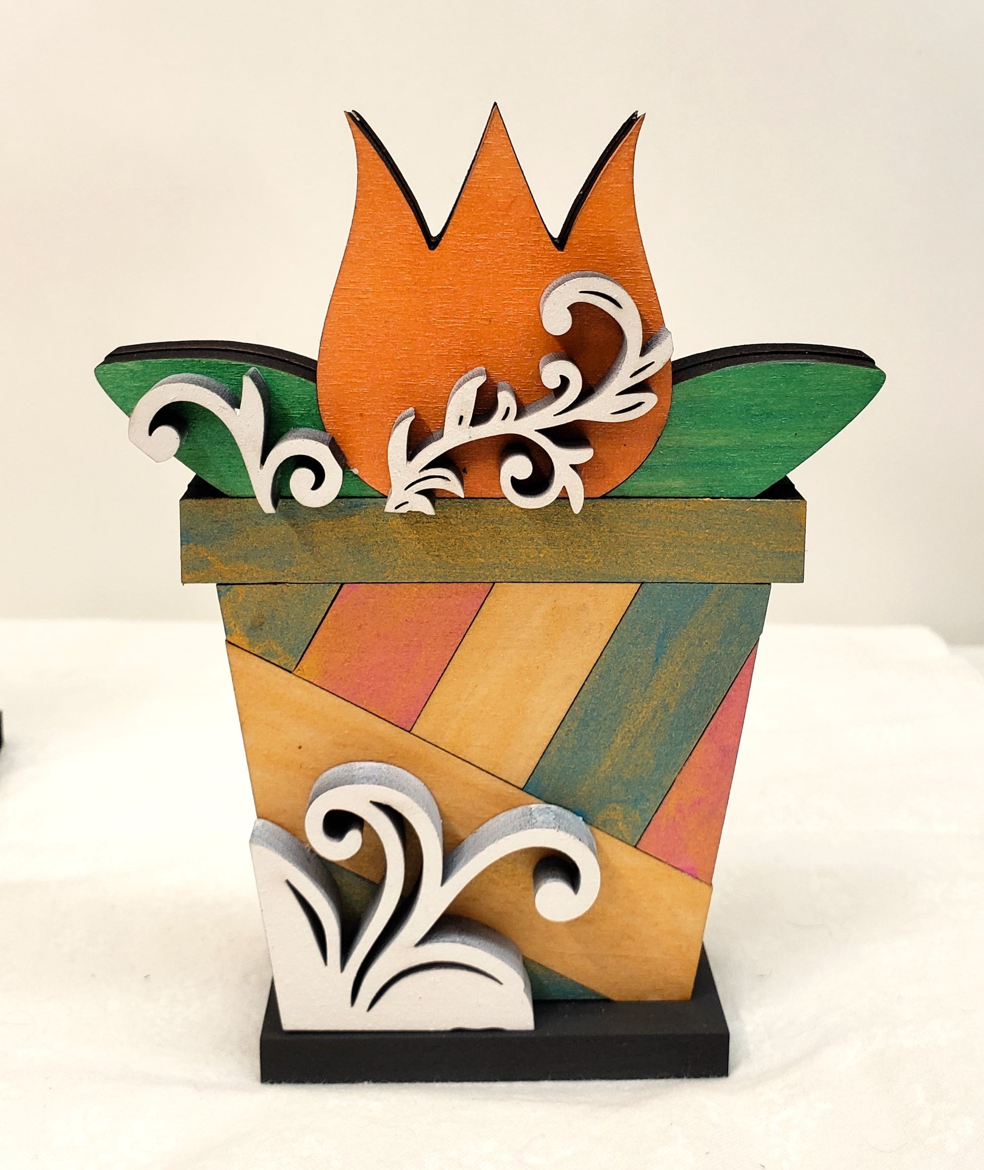 The Watering Can measures 7.5X6.5 inches, the Tulip is 5X4 inches and the Daisy is 6X4 inches tall.