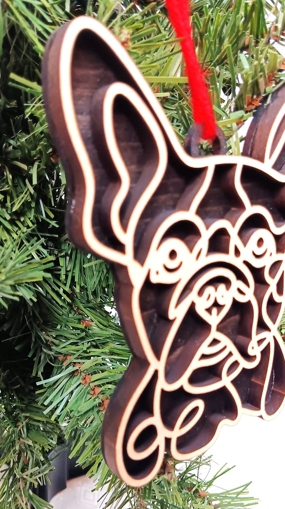 Each ornament is approximately 5 inches by 4.25 inches, and each is finished on front and back with the Aged Barrel stain so it's gorgeous from front to back!