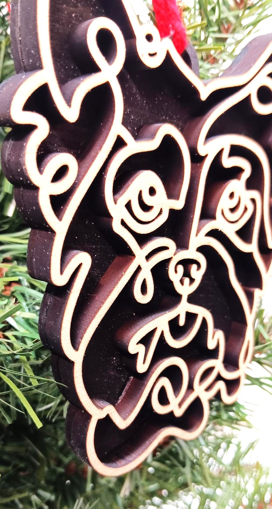 This wooden ornament is two layers of premium woods. The back layer has a unique Aged Barrel stain. The top layer is made from hard maple, and it has a polyacrylic coating.